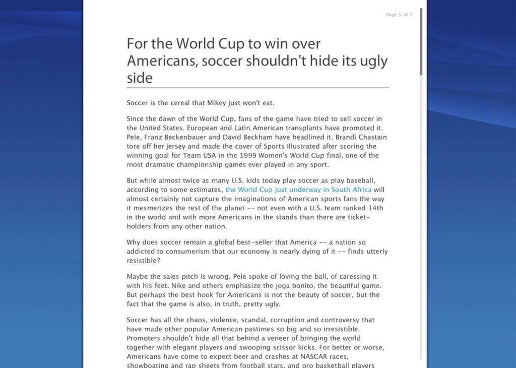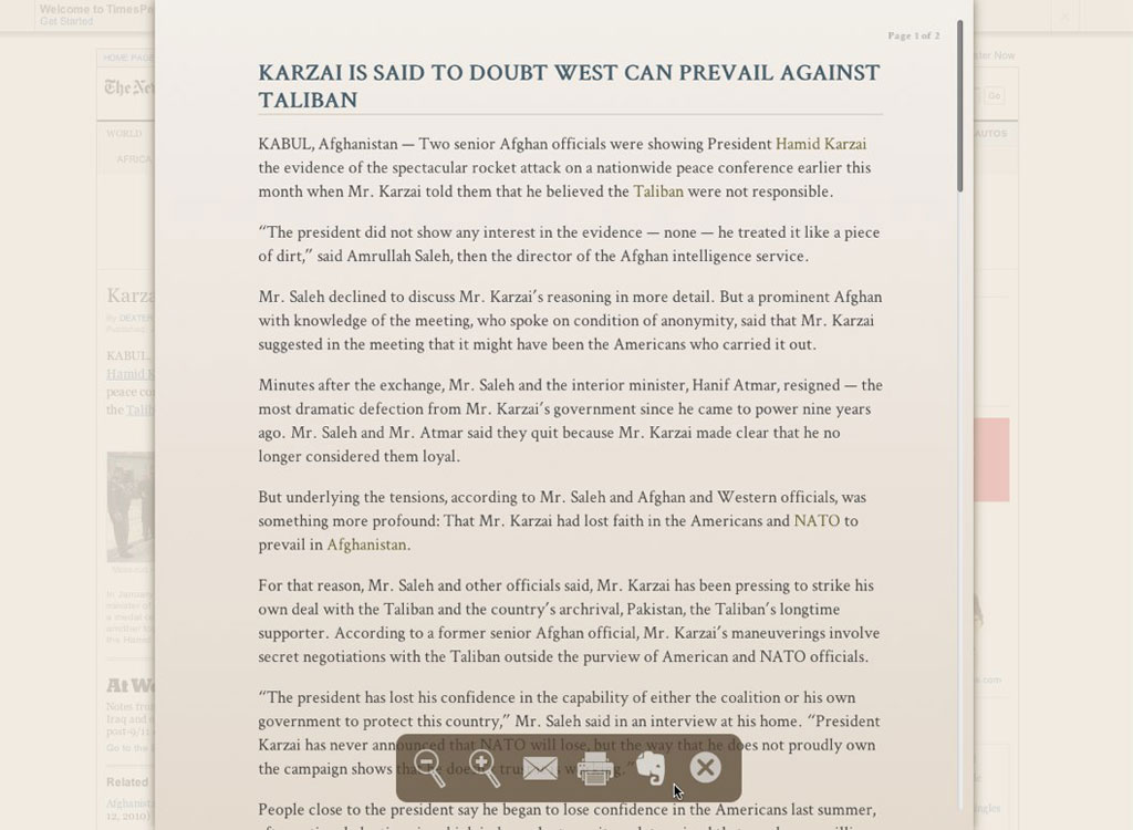 I was thrilled when it was first announced that someone had located the HTML/CSS for the new Safari Reader functionality in Safari 5, which happened the day it was released. I’ve been toying around with some ideas in the days since, and this hack is the result of a little too much effort. Click the screenshot thumbnail to see a full version.