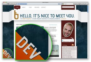 I have most of the websites I work on set up with separate development (usually local) and production/deployment servers. It’s pretty easy to keep straight when I’m first designing a site, but going back later and making changes can cause some confusion with all the refreshing and dealing with caches and all. So I’ve been using a trick to make it clear which version I’m loading at any given time.