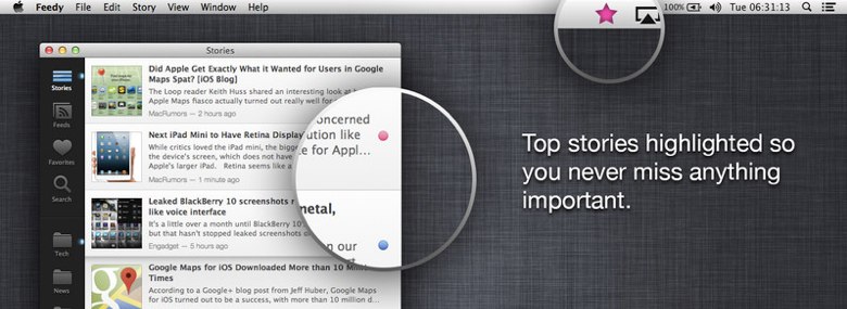 - A new RSS feed reader from the developer who brought you CodeRunner and Patterns. Fever-ish popularity and keyword ranking. No Reader sync, unfortunately.
