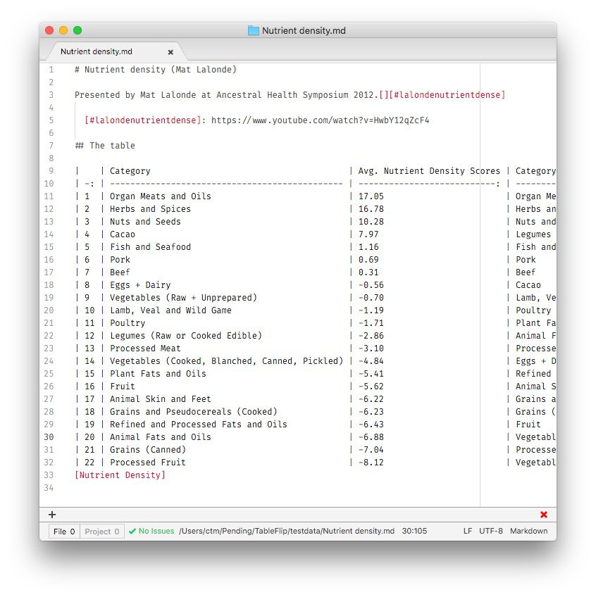 I was a beta tester for TableFlip, an app for editing Markdown (MultiMarkdown) tables painlessly, and I’ve been waiting excitedly to talk about it for quite some time.