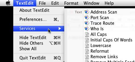 Using the Service is as easy as selecting the type of object (files, text) it acts on and selecting it, either from the Application > Services menu or by right-clicking on your selection and selecting it from the Services submenu. There’s one more way to activate the Service, though, and it makes accessing your tools very convenient…